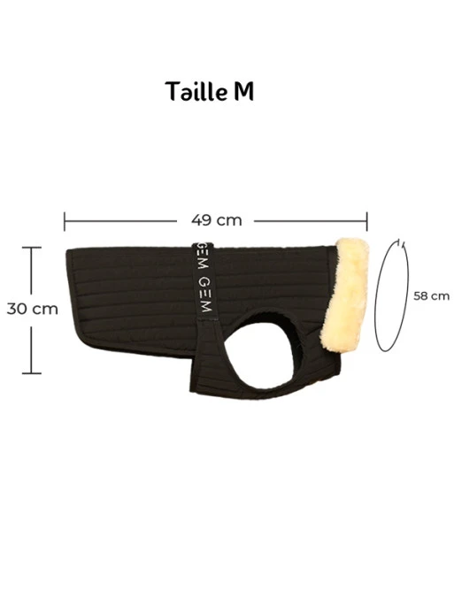Couverture à matelassage horizontal, avec col en faux mouton ultra douillet, et ceinture élastique avec logos GEM argentés.