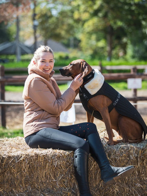 La couverture pour chien GEM combine élégance des détails et confort de la coupe lors des sorties hivernales en compagnie de votre fidèle compagnon