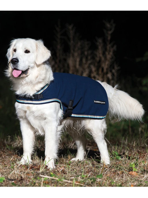 Couverture Waterproof Fleece dog rug Rambo Horseware, un manteau léger et imperméable pour garder votre chien au sec et au chaud par temps froid.