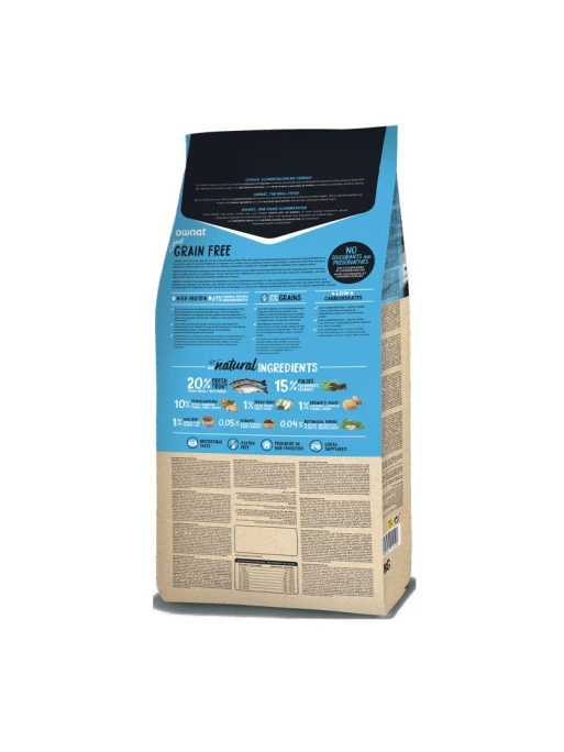 Croquettes Just Grain Free Truite de Ownat 3kg, une composition équilibrée et riche en d’oméga 3 pour l’alimentation de votre chien