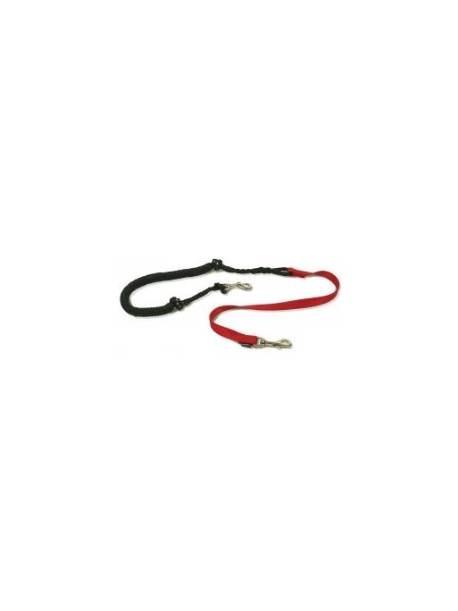 Amortisseur corde creuse polypropylène 10 mm, sandow 8 mm, laisse sangle polyamide 20 mm, longueur 60 cm, longueur totale tendue 2,00 m (conforme à la réglementation fédérale).