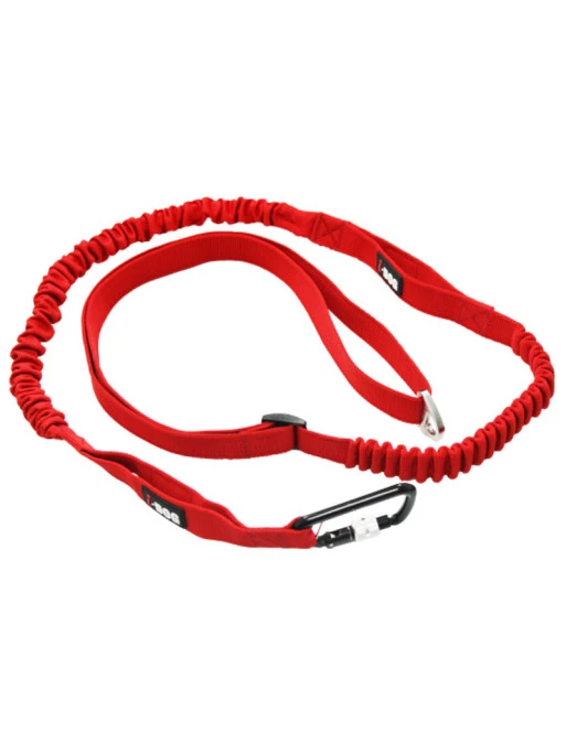 Cette longe technique est équipée d’un système de double amortissement permettant de contrôler les à-coups lors de la course du chien avec deux différents types de ressort. La sangle élastique est composée d’une partie plate de 20 cm de long (amortissement souple) et d’une sangle élastique ronde (amortissement plus dur).