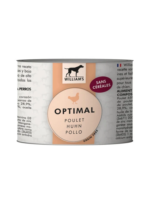 Cet aliment humide </strong>pour chien Optimal au poulet</strong> convient u00e0 tous u00e2ges</strong> et toutes races</strong>, composu00e9 d’ingru00e9dients de premiu00e8re qualitu00e9</strong>, riche en protu00e9ines, pauvre en glucides et sans cu00e9ru00e9ales</strong>.</h2> », »available_now »: »Expu00e9diu00e9 en 24h », »available_later »: »Expu00e9diu00e9 sous 5 u00e0 10 jours », »id »:14795, »id_product »:14795, »out_of_stock »:2, »new »:0, »id_product_attribute »: »0″, »quantity_wanted »:1, »extraContent »:[], »allow_oosp »:1, »category »: »aliments-humides », »category_name »: »Aliments humides », »link »: »https://www.naturedog.fr/aliments-humides/14795-patee-william-s-optimal-au-poulet-200g-3760325081005.html », »attribute_price »:0, »price_tax_exc »:2.916667, »price_without_reduction »:3.5, »reduction »:0, »specific_prices »:[], »quantity »:15, »quantity_all_versions »:15, »id_image »: »fr-default », »features »:[], »attachments »:[], »virtual »:0, »pack »:0, »packItems »:[], »nopackprice »:0, »customization_required »:false, »rate »:20, »tax_name »: »TVA FR 20% », »ecotax_rate »:0, »unit_price »: » », »customizations »:{« fields »:[]}, »id_customization »:0, »is_customizable »:false, »show_quantities »:false, »quantity_label »: »Produits », »quantity_discounts »:[], »customer_group_discount »:0, »images »:[{« bySize »:{« small_default »:{« url »: »https://www.naturedog.fr/42859-small_default/patee-william-s-optimal-au-poulet-200g.jpg », »width »:75, »height »:75}, »cart_default »:{« url »: »https://www.naturedog.fr/42859-cart_default/patee-william-s-optimal-au-poulet-200g.jpg », »width »:125, »height »:125}, »mt_cart_panel »:{« url »: »https://www.naturedog.fr/42859-mt_cart_panel/patee-william-s-optimal-au-poulet-200g.jpg », »width »:141, »height »:189}, »home_default »:{« url »: »https://www.naturedog.fr/42859-home_default/patee-william-s-optimal-au-poulet-200g.jpg », »width »:250, »height »:319}, »medium_default »:{« url »: »https://www.naturedog.fr/42859-medium_default/patee-william-s-optimal-au-poulet-200g.jpg », »width »:452, »height »:452}, »mt_home »:{« url »: »https://www.naturedog.fr/42859-mt_home/patee-william-s-optimal-au-poulet-200g.jpg », »width »:420, »height »:561}, »mt_medium »:{« url »: »https://www.naturedog.fr/42859-mt_medium/patee-william-s-optimal-au-poulet-200g.jpg », »width »:513, »height »:684}, »large_default »:{« url »: »https://www.naturedog.fr/42859-large_default/patee-william-s-optimal-au-poulet-200g.jpg », »width »:800, »height »:800}}, »small »:{« url »: »https://www.naturedog.fr/42859-small_default/patee-william-s-optimal-au-poulet-200g.jpg », »width »:75, »height »:75}, »medium »:{« url »: »https://www.naturedog.fr/42859-medium_default/patee-william-s-optimal-au-poulet-200g.jpg », »width »:452, »height »:452}, »large »:{« url »: »https://www.naturedog.fr/42859-large_default/patee-william-s-optimal-au-poulet-200g.jpg », »width »:800, »height »:800}, »legend »: »Pu00e2tu00e9e William’s Optimal au poulet 200g », »id_image »: »42859″, »cover »: »1″, »position »: »1″, »associatedVariants »:[]}], »cover »:{« bySize »:{« small_default »:{« url »: »https://www.naturedog.fr/42859-small_default/patee-william-s-optimal-au-poulet-200g.jpg », »width »:75, »height »:75}, »cart_default »:{« url »: »https://www.naturedog.fr/42859-cart_default/patee-william-s-optimal-au-poulet-200g.jpg », »width »:125, »height »:125}, »mt_cart_panel »:{« url »: »https://www.naturedog.fr/42859-mt_cart_panel/patee-william-s-optimal-au-poulet-200g.jpg », »width »:141, »height »:189}, »home_default »:{« url »: »https://www.naturedog.fr/42859-home_default/patee-william-s-optimal-au-poulet-200g.jpg », »width »:250, »height »:319}, »medium_default »:{« url »: »https://www.naturedog.fr/42859-medium_default/patee-william-s-optimal-au-poulet-200g.jpg », »width »:452, »height »:452}, »mt_home »:{« url »: »https://www.naturedog.fr/42859-mt_home/patee-william-s-optimal-au-poulet-200g.jpg », »width »:420, »height »:561}, »mt_medium »:{« url »: »https://www.naturedog.fr/42859-mt_medium/patee-william-s-optimal-au-poulet-200g.jpg », »width »:513, »height »:684}, »large_default »:{« url »: »https://www.naturedog.fr/42859-large_default/patee-william-s-optimal-au-poulet-200g.jpg », »width »:800, »height »:800}}, »small »:{« url »: »https://www.naturedog.fr/42859-small_default/patee-william-s-optimal-au-poulet-200g.jpg », »width »:75, »height »:75}, »medium »:{« url »: »https://www.naturedog.fr/42859-medium_default/patee-william-s-optimal-au-poulet-200g.jpg », »width »:452, »height »:452}, »large »:{« url »: »https://www.naturedog.fr/42859-large_default/patee-william-s-optimal-au-poulet-200g.jpg », »width »:800, »height »:800}, »legend »: »Pu00e2tu00e9e William’s Optimal au poulet 200g », »id_image »: »42859″, »cover »: »1″, »position »: »1″, »associatedVariants »:[]}, »has_discount »:false, »discount_type »:null, »discount_percentage »:null, »discount_percentage_absolute »:null, »discount_amount »:null, »discount_amount_to_display »:null, »price_amount »:3.5, »unit_price_full »: » », »show_availability »:true, »availability_date »:null, »availability_message »: »Expu00e9diu00e9 en 24h », »availability »: »available »} » role= »tabpanel » aria-labelledby= »product-details »>