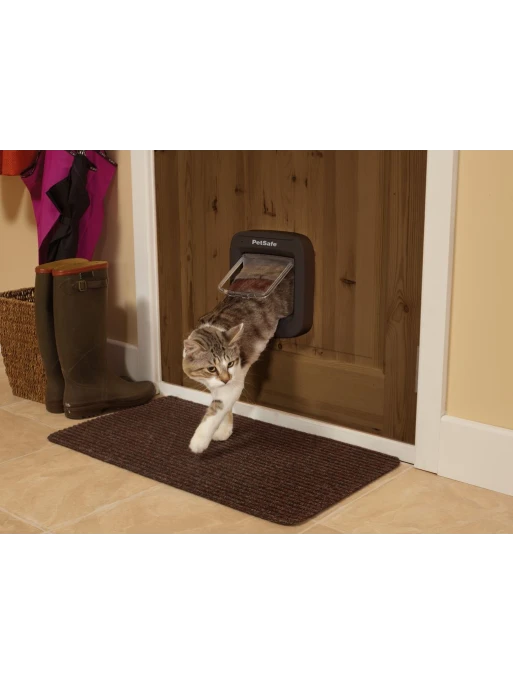 Mettant en œuvre la technologie d’identification par radiofréquence (RFID), cette porte à puce électronique fonctionne par la lecture de la micropuce unique de l’animal sans nécessiter de collier ou autre accessoire. Lorsque le chat ou le chien s’approche de la porte d’accès, cette dernière s’ouvre uniquement si la puce détectée a été enregistrée. La porte comporte un système de verrouillage à 4 positions qui permet de gérer les accès. Il est également possible d’acheter des clefs d’accès pour les animaux qui ne seraient pas munis de puce électronique. Pour les animaux jusqu’à 7 kg et d’une largeur d’épaule jusqu’à 15 cm.