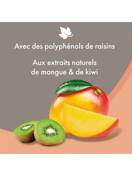 Ce shampooing premium contient de la mangue, reconnue pour ses propriu00e9tu00e9s nourrissantes et ru00e9paratrices</strong> en profondeur sur les poils ternes, gru00e2ce u00e0 sa richesse en acides gras nutritifs et en agents gainants</strong>. De plus, il renferme du kiwi, qui agit de maniu00e8re tonifiante et revitalisante</strong> gru00e2ce u00e0 sa concentration u00e9levu00e9e en micronutriments tels que les vitamines B, C, E et la provitamine A.</p>n